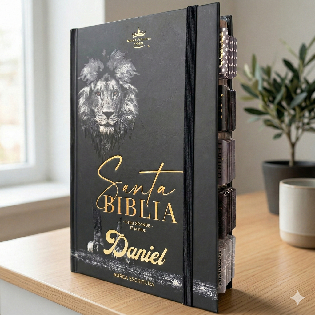 Personaliza tu Biblia con tu nombre en acabado dorado y elige tus tabs favoritos para una experiencia única.